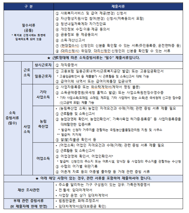 ※단, 수급자, 차상위계층, 기준 중위소득 50% 이하 : 근로활동으로 근로, 사업소득이 있기만 하면 됨